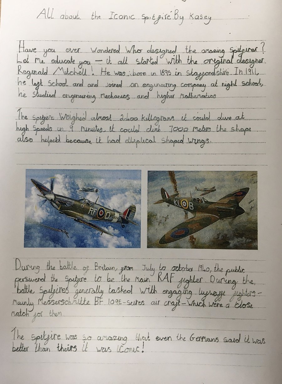 Here are some examples of pupils' work. You will see that historical knowledge features in the English / written work of pupils so they practise their Literacy skills whilst demonstrating what they have learned within their History curriculum studies.