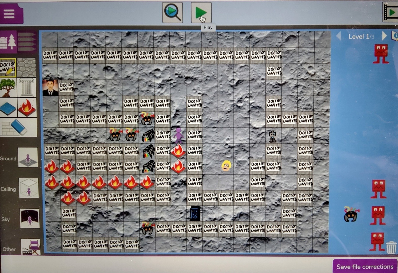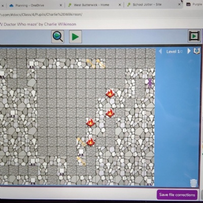 Furthermore, when studying 'Time Travel' and in particular the phenomenon that is Doctor Who, the children applied their coding skills to build a 3D game from the ground up. Please see below examples of their planning and coding screen as well as stills from playing the finished game.