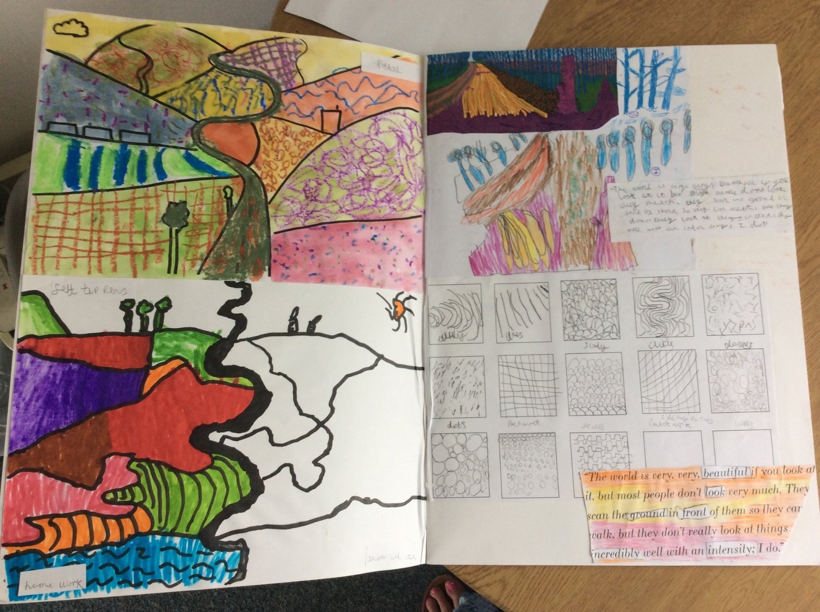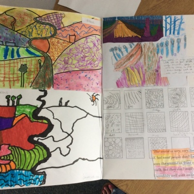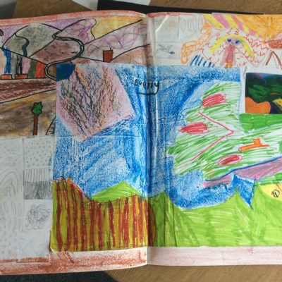 Here are some examples of KS1 sketchbooks, documenting the creative process during a unit on David Hockney's landscapes. We value sketchbooks as a way for children to express themselves and take ownership over their learning - we let children record and display their work as they wish, within their sketchbooks.
