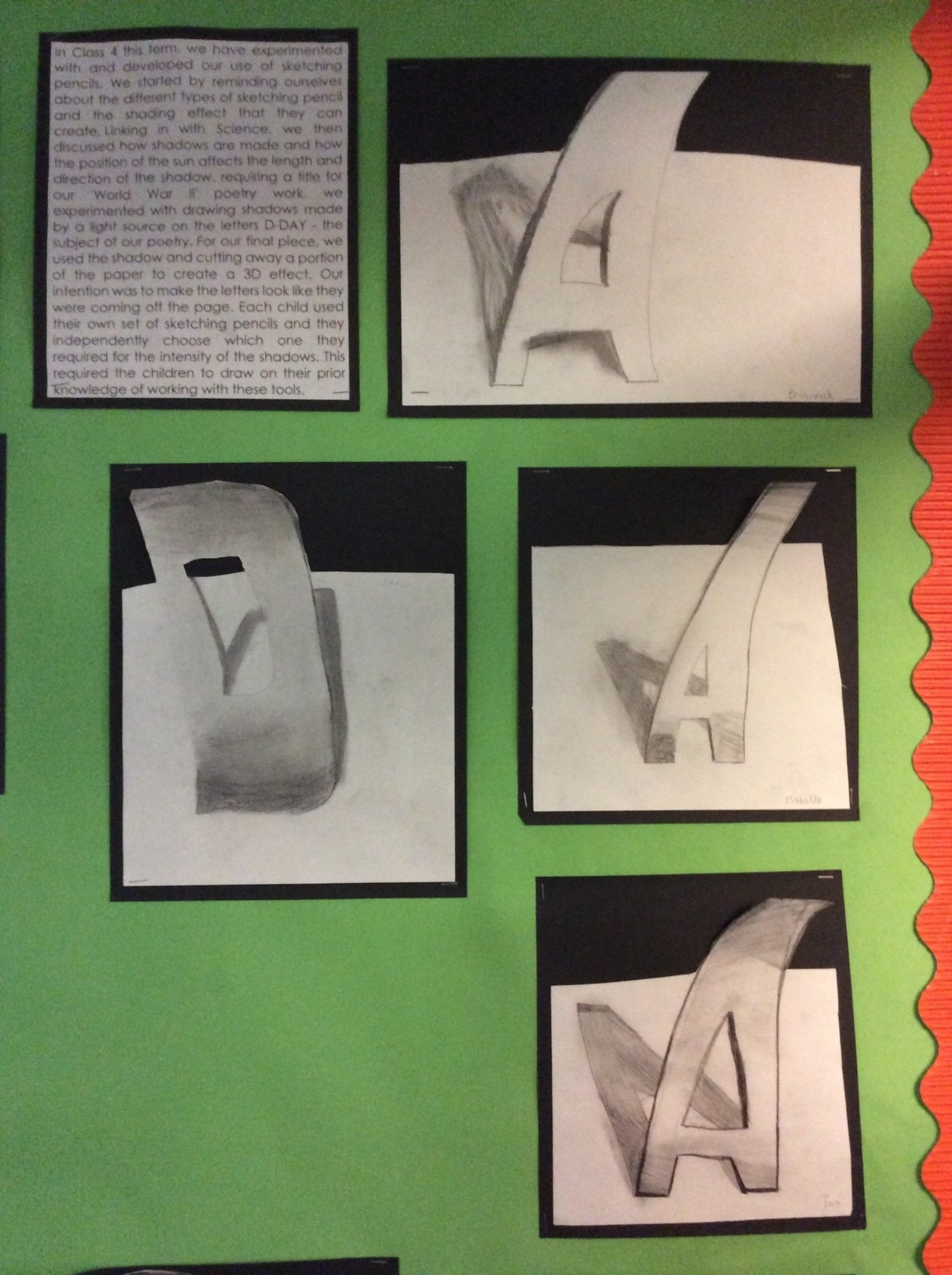 Here are some examples of pupils work which has been displayed around school. Our children are always proud to have their work on the wall, for all to enjoy!